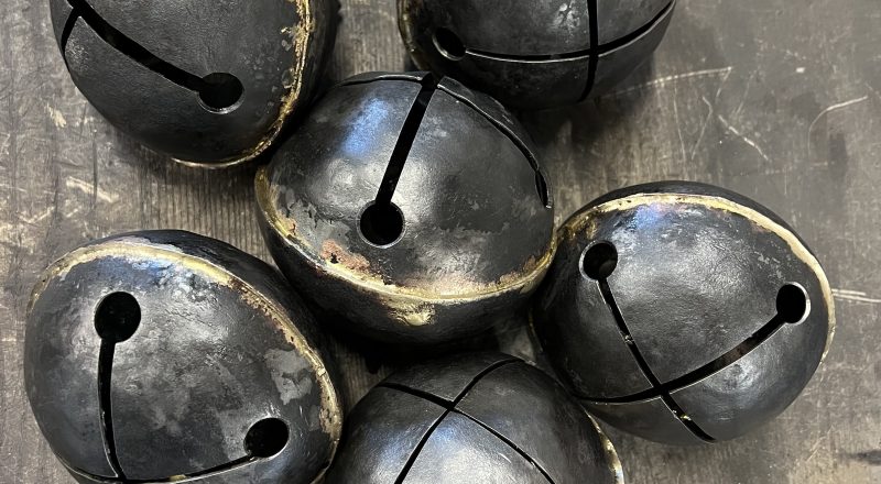 Gerissen, ausgeschlagen, scherbelnder klang – dies nach vielen jahren im gebrauch. Kleine bleche eingesetzt, risse mit messing verlötet, fehlende klöppel ersetzt und nun „chiedäts“ wieder.