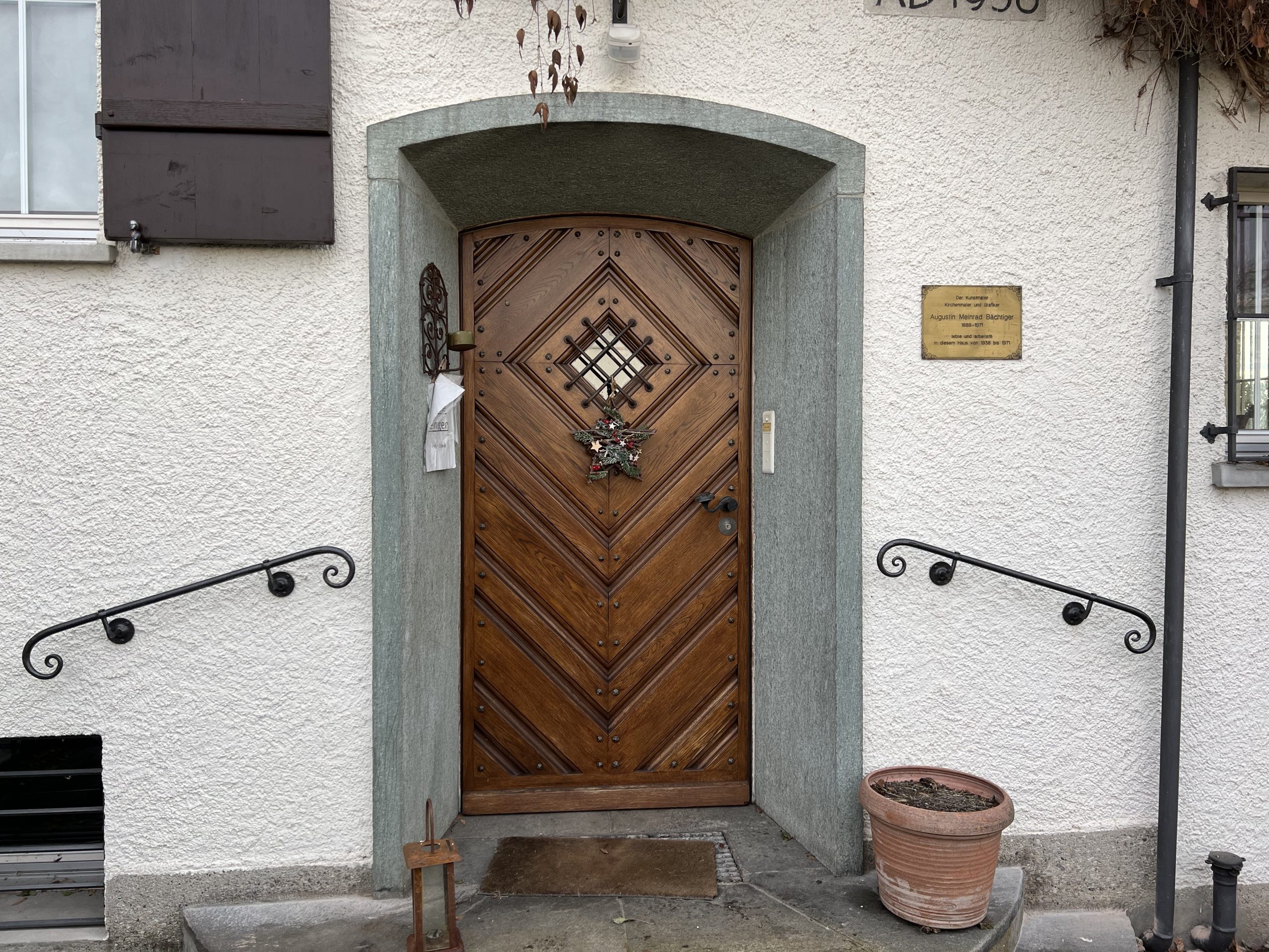 Für das haus (1938) vom kunst- und kirchenmaler augustin mainrad bächtiger durfte ich zwei handläufe schmieden. Sie passen sich sehr gut ins gesamtbild vom haus ein.