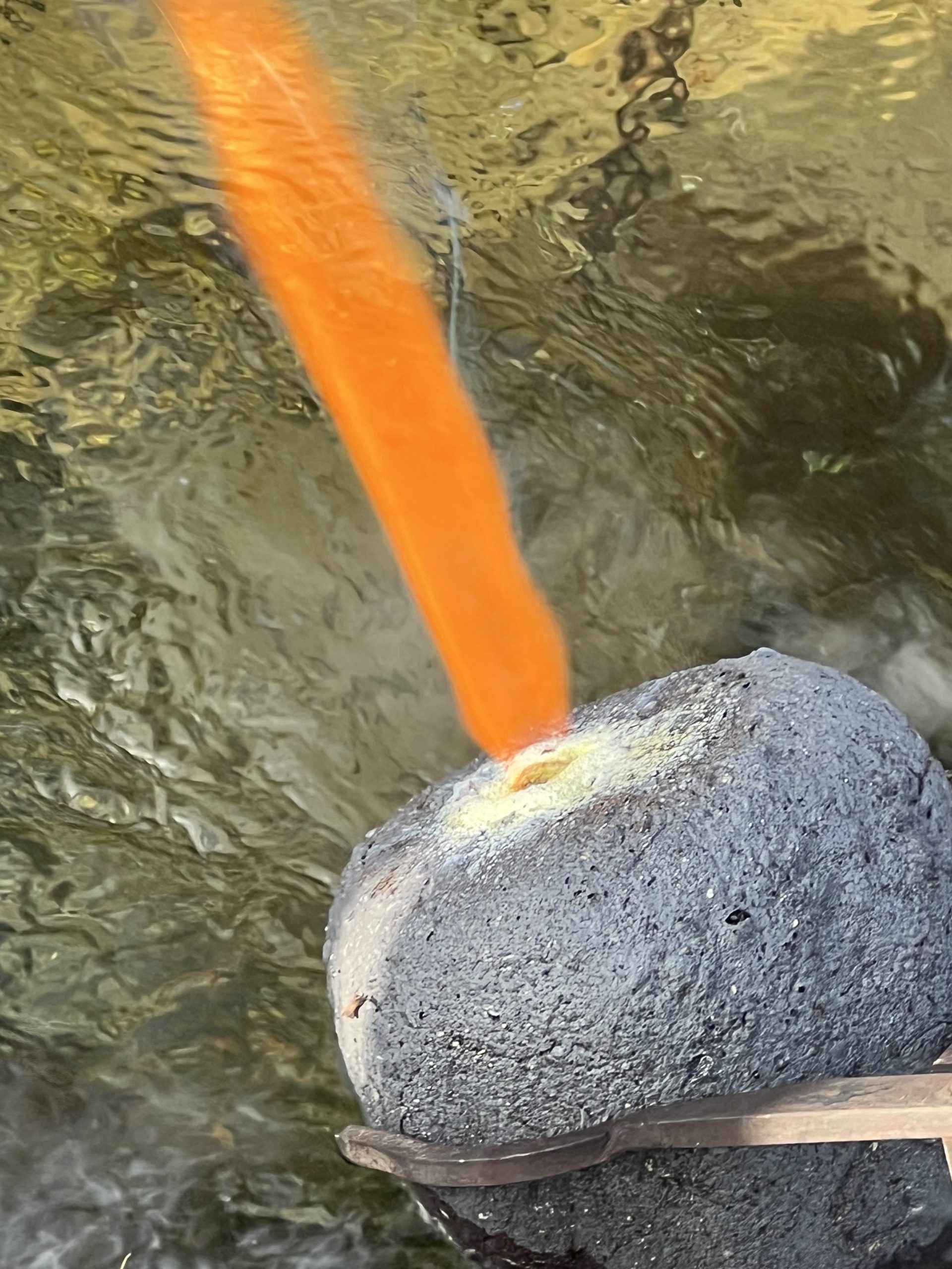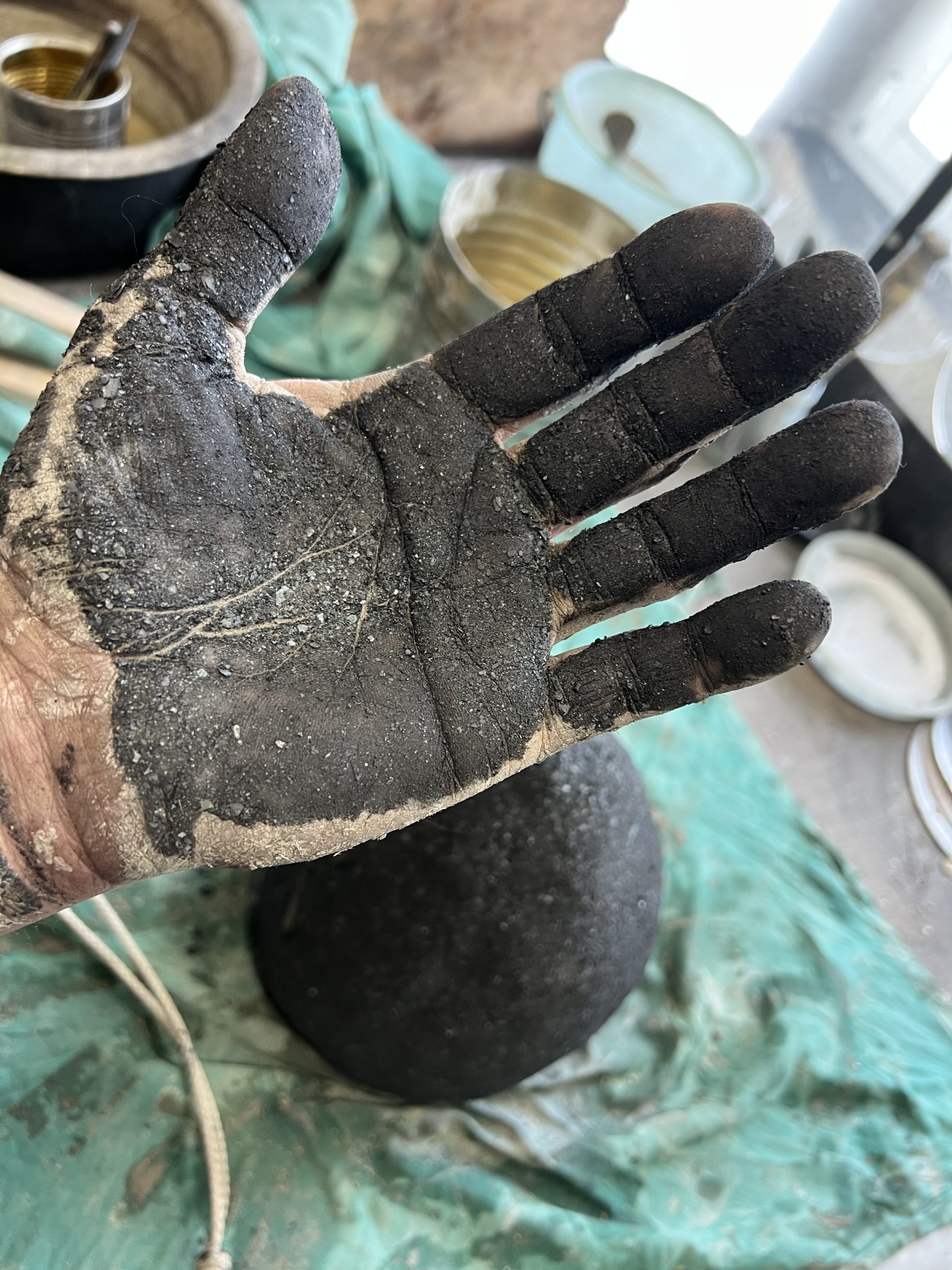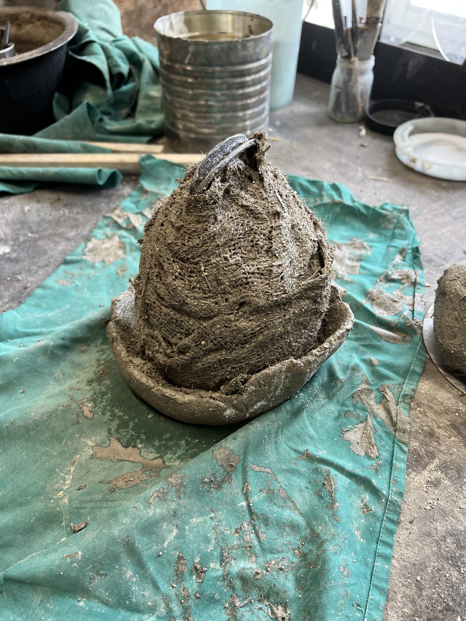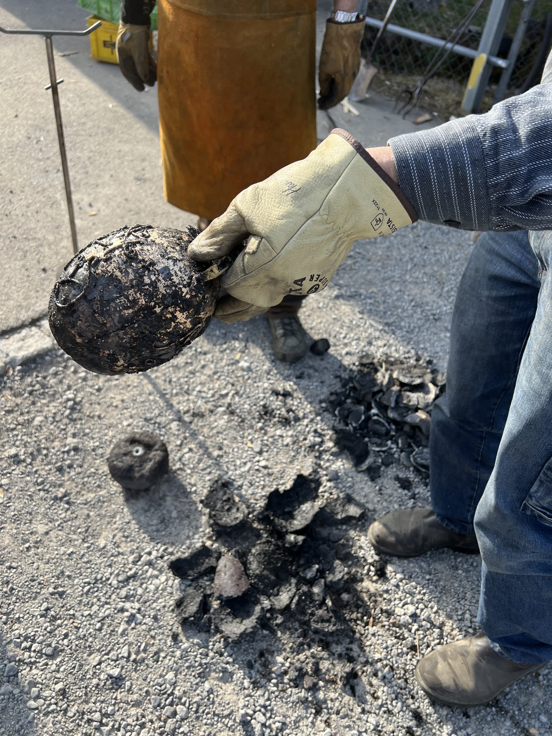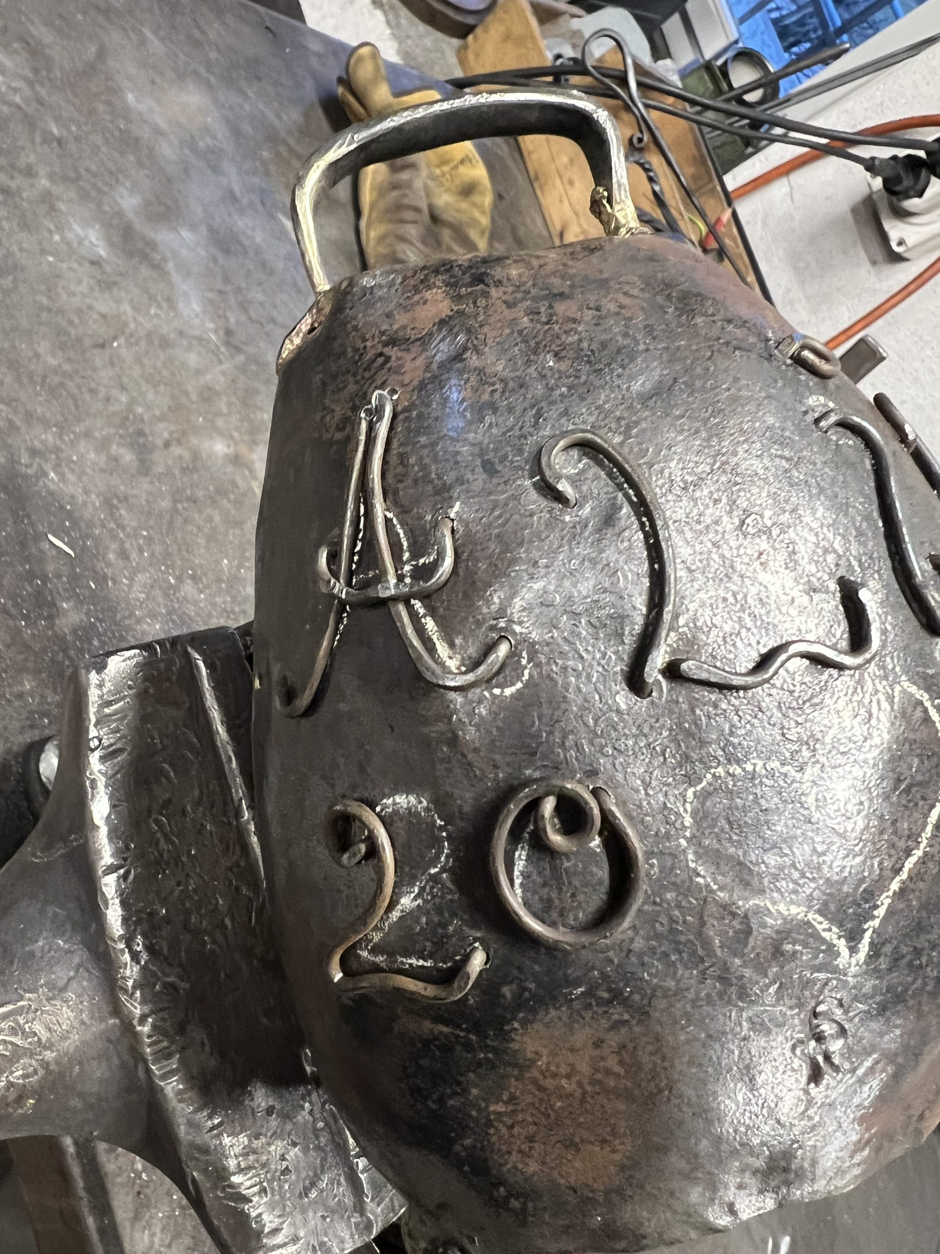 ein schellenprototyp wurde zu einer familienschelle. die initialen und symbole formte ich aus draht. beim einpacken mit lehm für das vermessingen, experementierte ich mit knochenleim und sacktuch. der vater war beim feuervermessingen dabei, ein spannender prozess. ein tolles ergebniss in der oberfläche wie im klang, das macht glücklich.